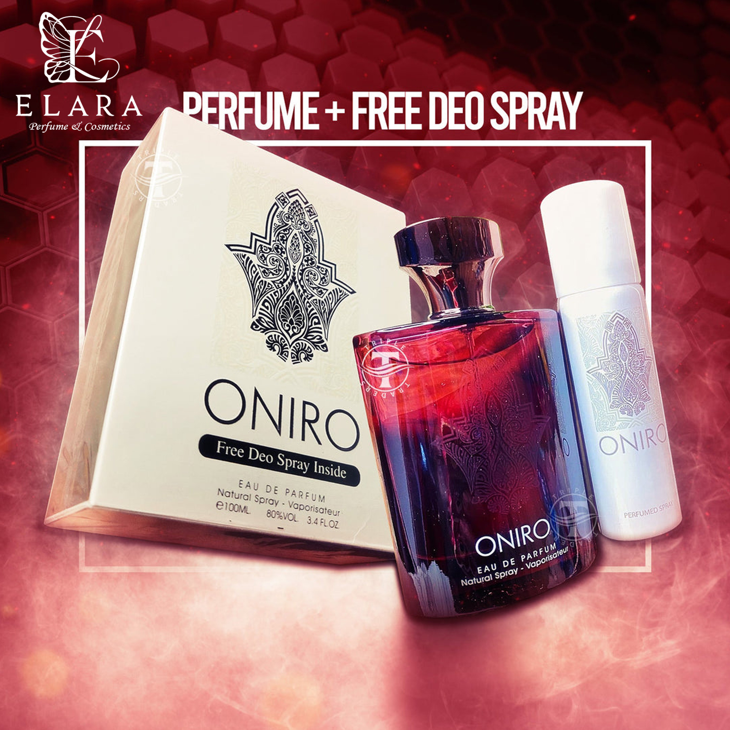 Oniro Eau de Parfum محصولی بینقص از برند Fragrance World؛ با رایحهای ترکیبی از پرتقال، گریپفروت و نارنگی در نتهای ابتدایی، برگهای سبز در میانی، و عنبر، گایئاک وود، خزه بلوط و پچولی در نت پایانی. این عطر یونیسکس در حجم 100 میلیلیتر عرضه میشود و داخل بستهبندی آن اسپری دئودورانت رایگانی نیز وجود دارد. ترکیبات آن شامل Alcohol Denat، Parfum و مواد عطری شناختهشده است.